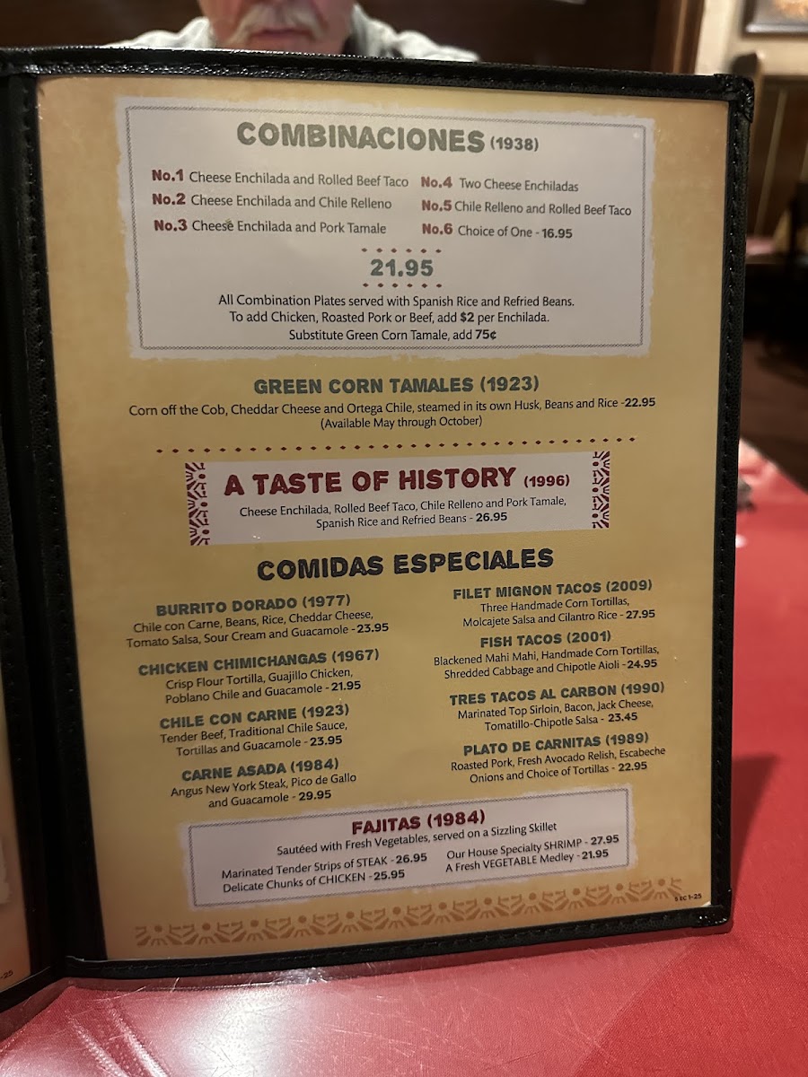 1923. First enchilada served at El Cholo. Layered corn tortillas, simmered chicken, salsa roja, salsa verde, and fried egg.